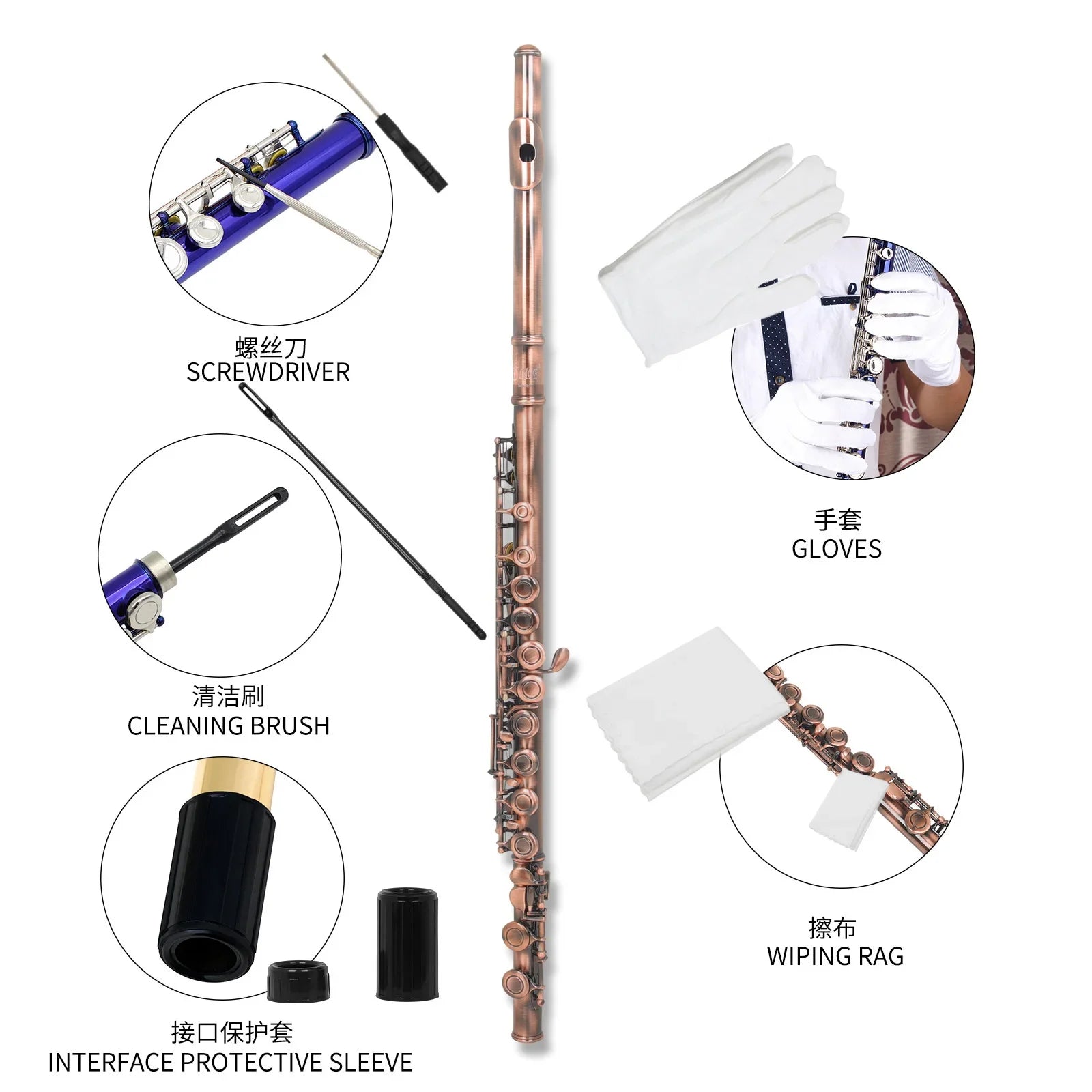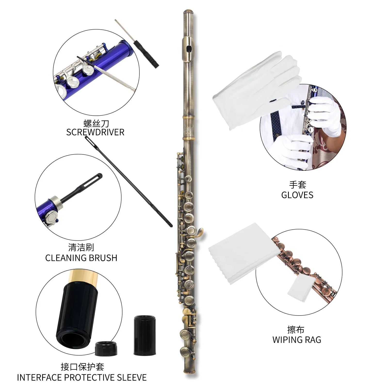Acompanha estojo de couro acolchoado e bolsa de ombro, garantindo transporte seguro, além de bastão e pano de limpeza para manutenção diária. É uma flauta versátil, confiável e ideal para apresentações de concerto e prática avançada.