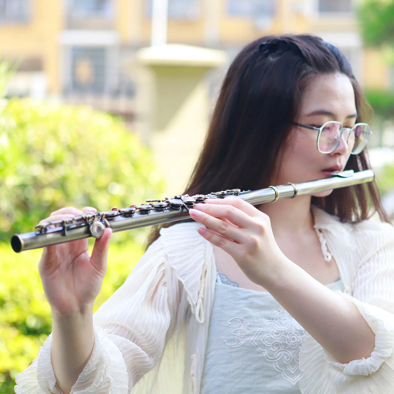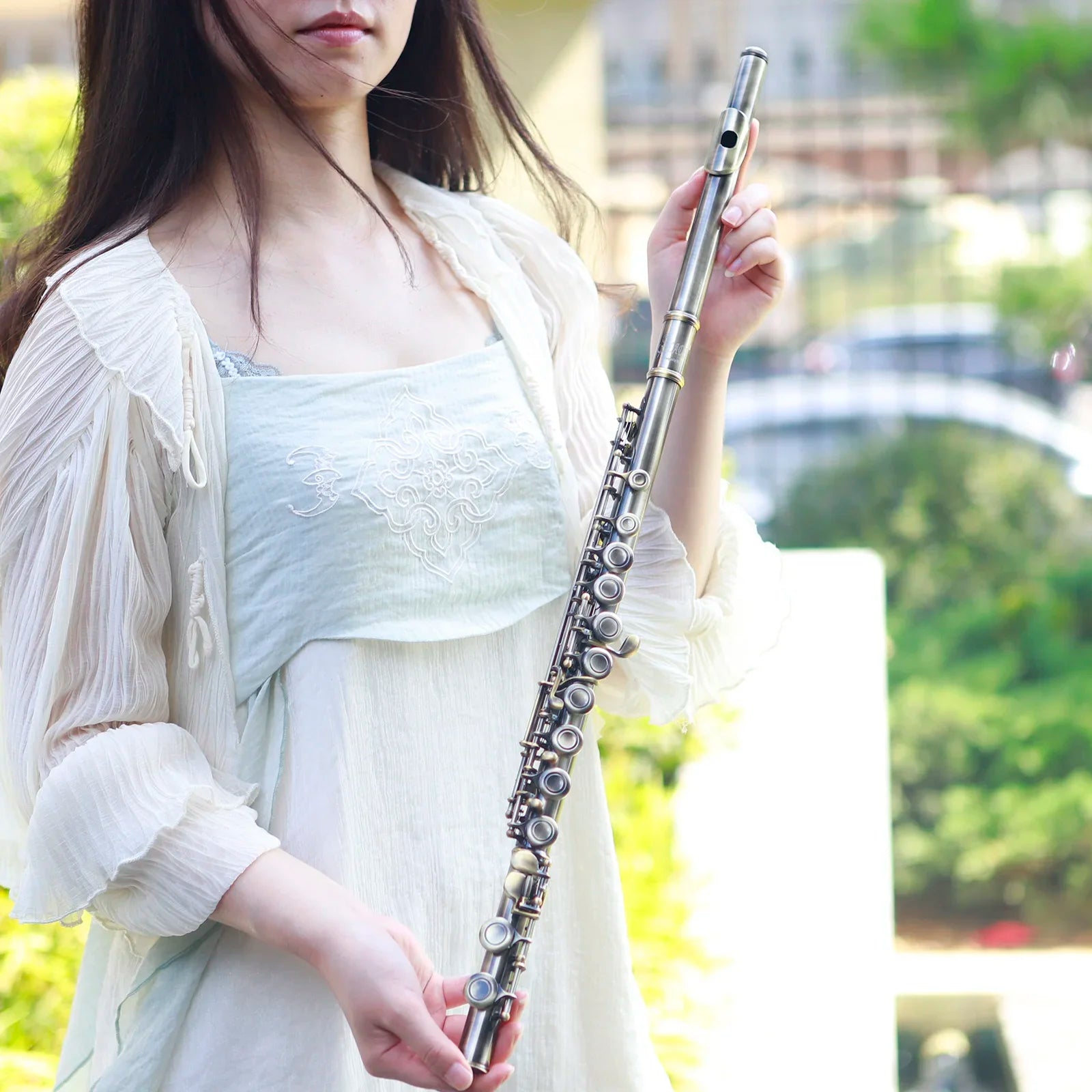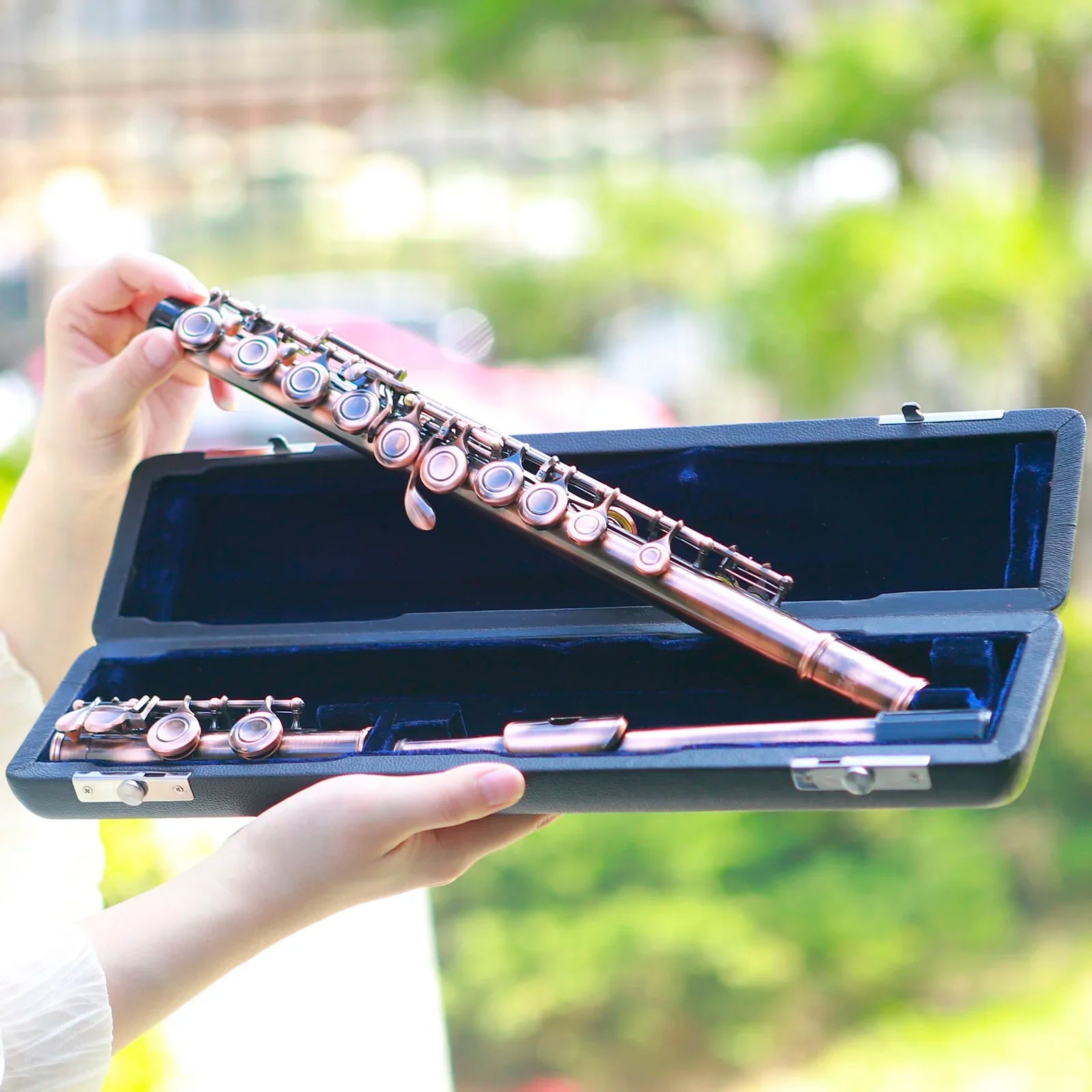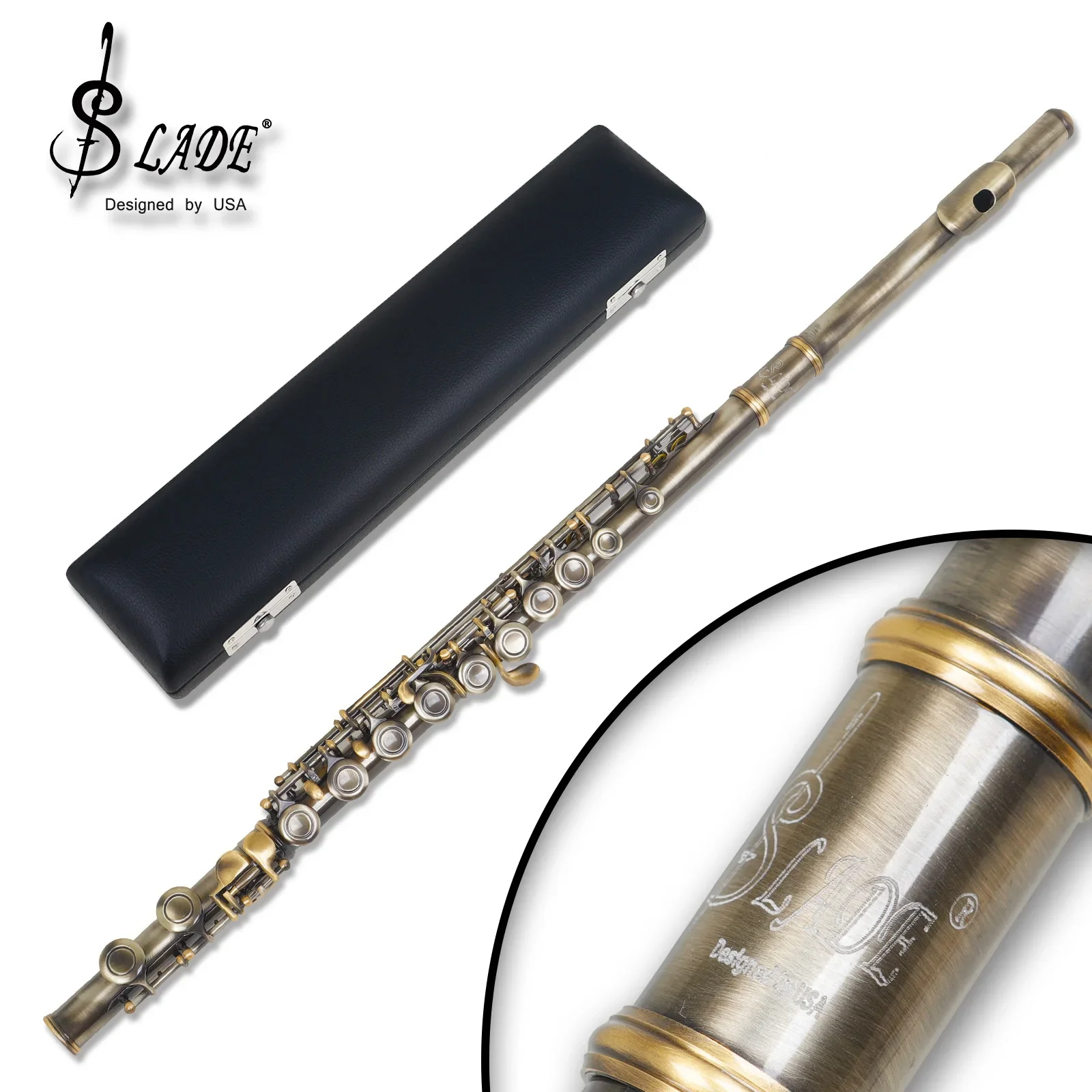 Flauta Transversal SLADE 16 Furos C Chaves Fechadas Acabamento Cobre Envelhecido Profissional