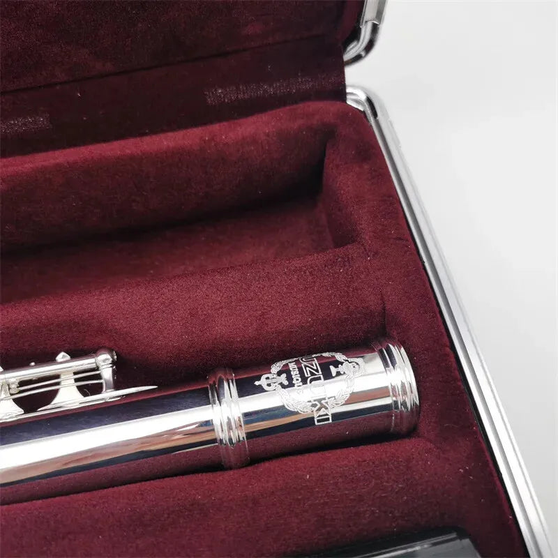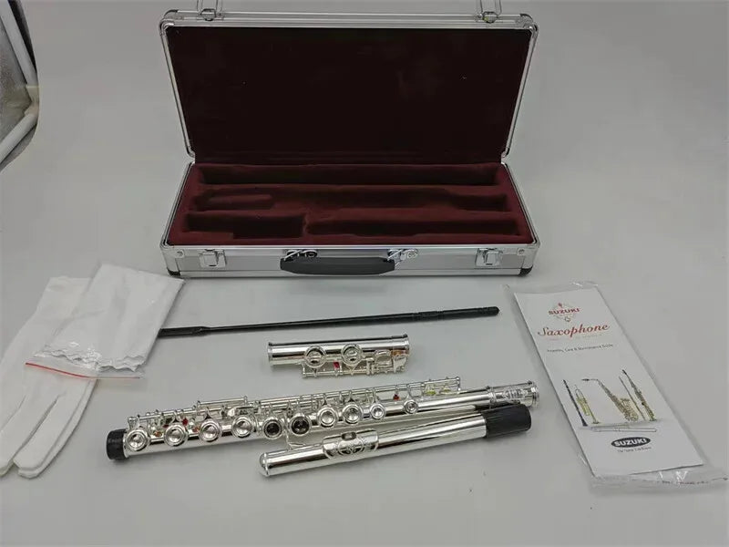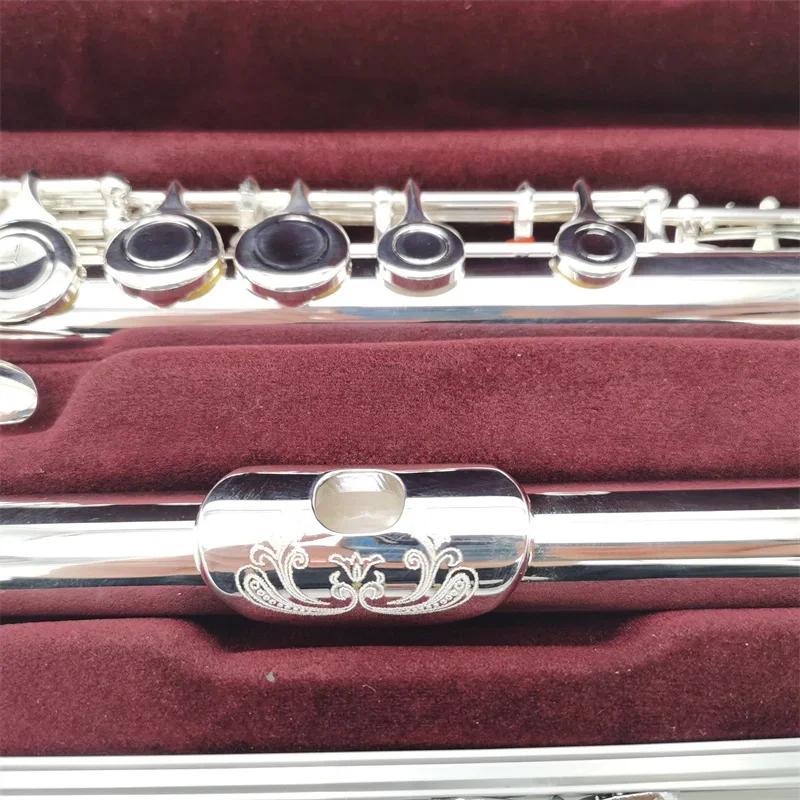 Esta flauta transversal profissional de 16 furos com mecanismo em C combina precisão sonora, design elegante e acabamento prateado de alta qualidade. Fabricada em cuproníquel resistente, oferece excelente projeção e durabilidade, mantendo um timbre equilibrado e brilhante, ideal para apresentações e estudos avançados.